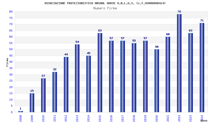 | Anno | Firme | Importi | Media | Naz. | Reg. | Prov. | Comu. |