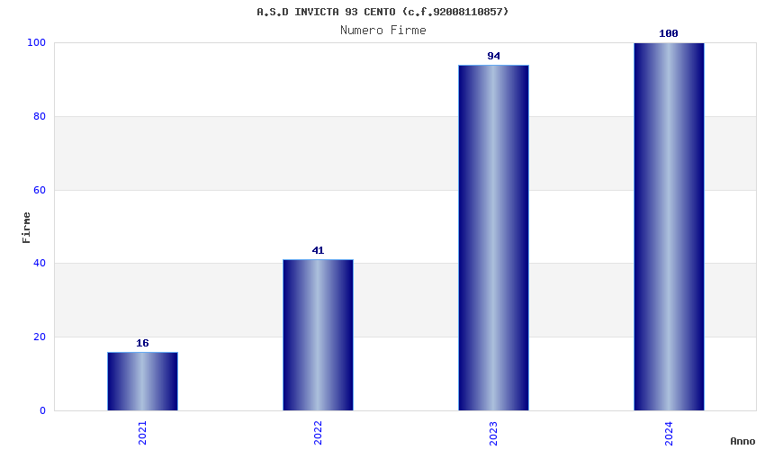 | Anno | Firme | Importi | Media | Naz. | Reg. | Prov. | Comu. |
