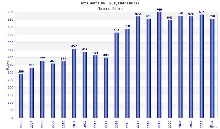 Anno Firme Importi Media Naz. Reg. Prov. Comu.