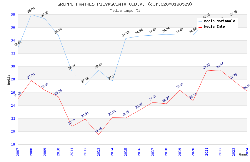 | Anno | Firme | Importi | Media | Naz. | Reg. | Prov. | Comu. |