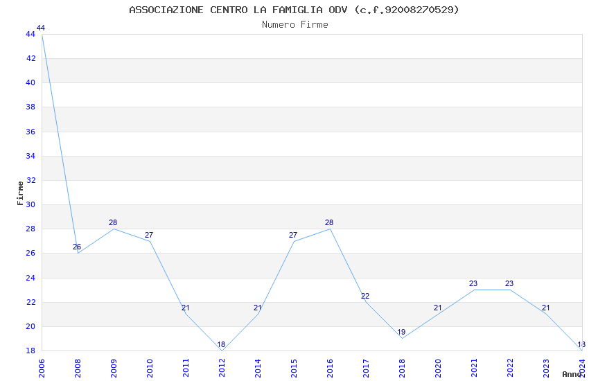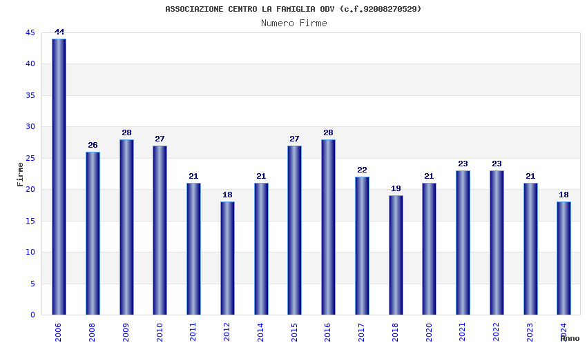 | Anno | Firme | Importi | Media | Naz. | Reg. | Prov. | Comu. |