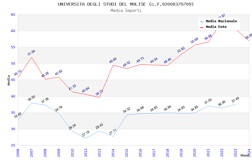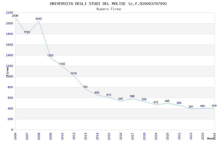 | Anno | Firme | Importi | Media | Naz. | Reg. | Prov. | Comu. |