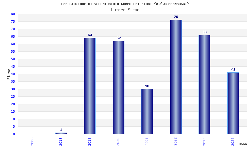 | Anno | Firme | Importi | Media | Naz. | Reg. | Prov. | Comu. |