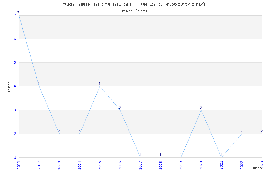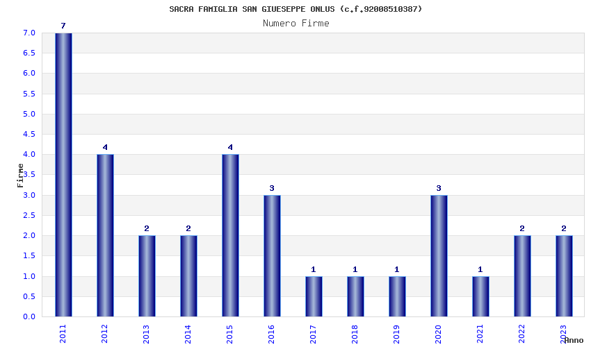 | Anno | Firme | Importi | Media | Naz. | Reg. | Prov. | Comu. |