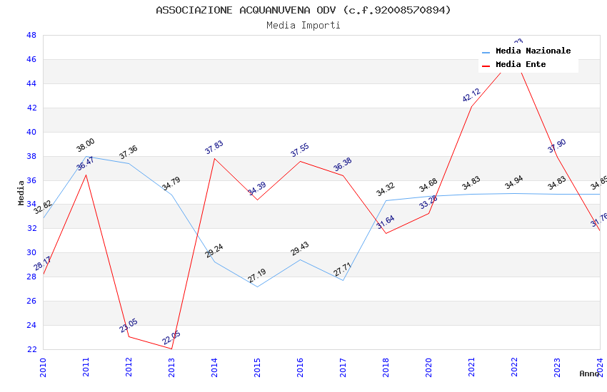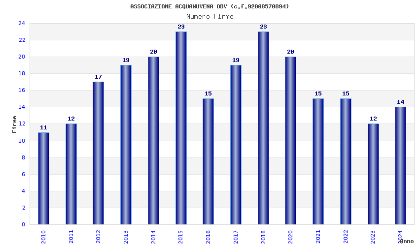 | Anno | Firme | Importi | Media | Naz. | Reg. | Prov. | Comu. |