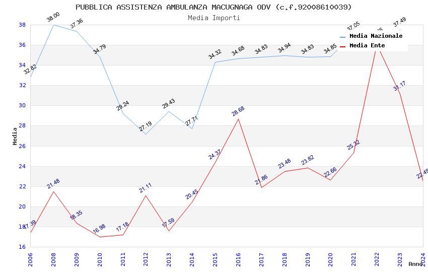 | Anno | Firme | Importi | Media | Naz. | Reg. | Prov. | Comu. |