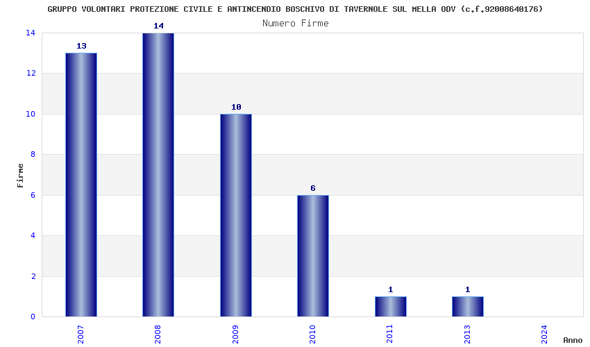 | Anno | Firme | Importi | Media | Naz. | Reg. | Prov. | Comu. |