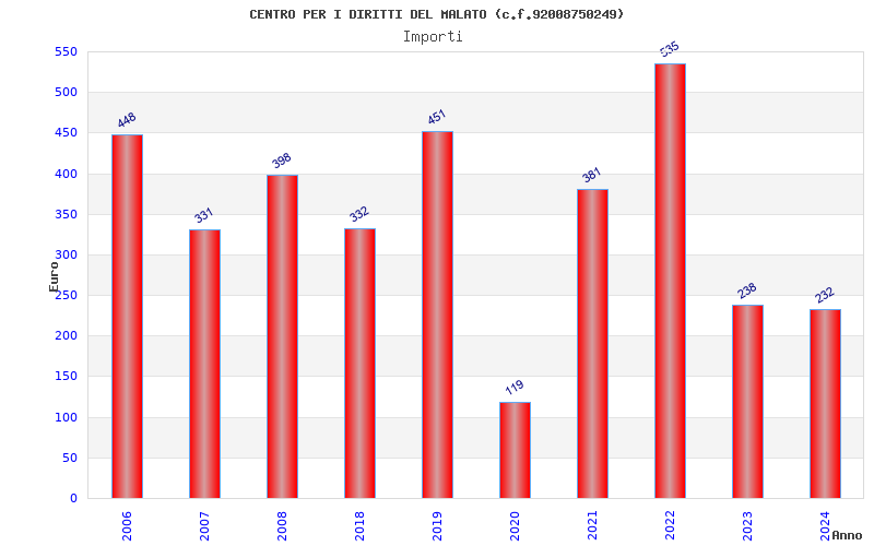 | Anno | Firme | Importi | Media | Naz. | Reg. | Prov. | Comu. |