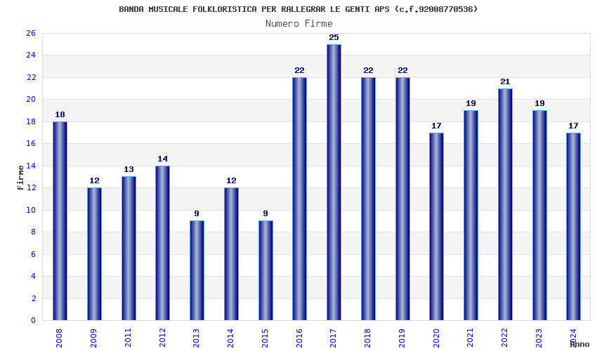 | Anno | Firme | Importi | Media | Naz. | Reg. | Prov. | Comu. |