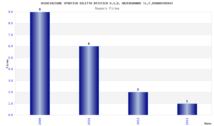 | Anno | Firme | Importi | Media | Naz. | Reg. | Prov. | Comu. |