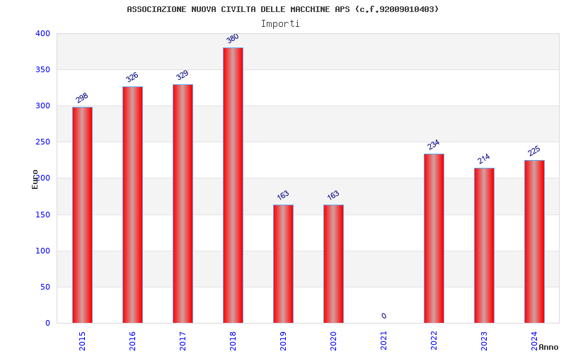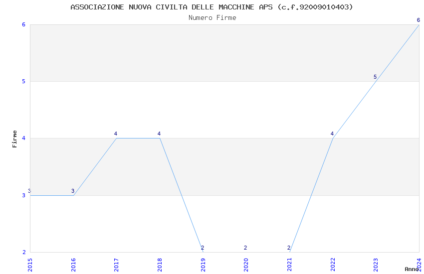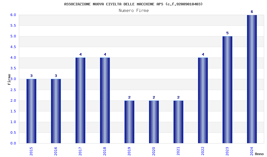 | Anno | Firme | Importi | Media | Naz. | Reg. | Prov. | Comu. |