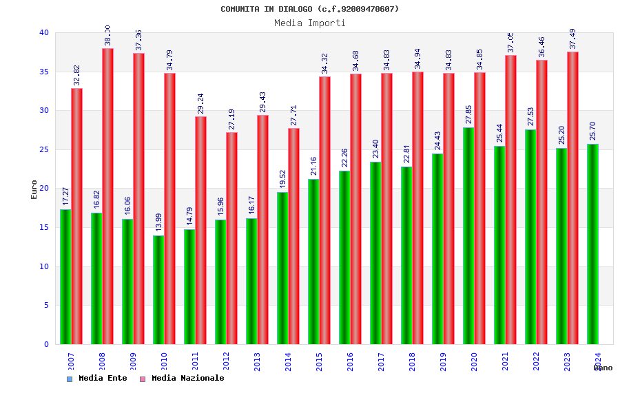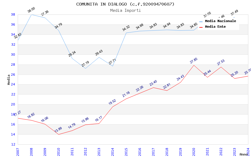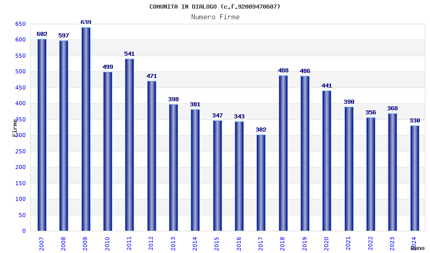 | Anno | Firme | Importi | Media | Naz. | Reg. | Prov. | Comu. |