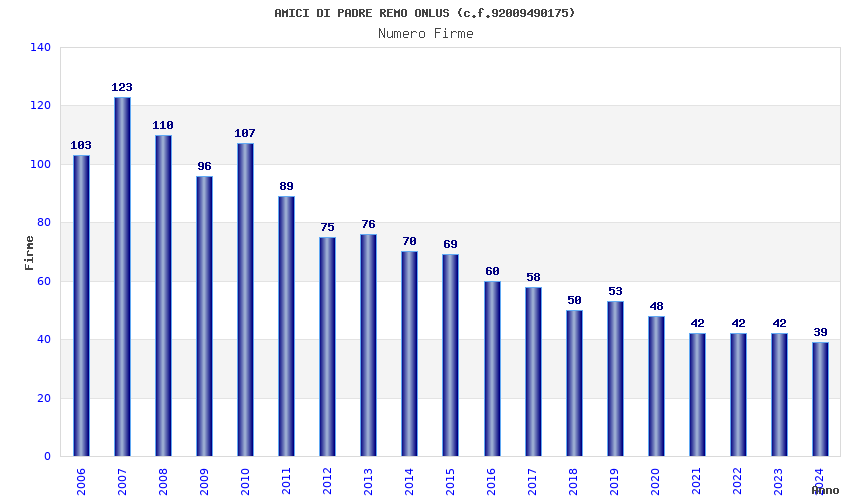 | Anno | Firme | Importi | Media | Naz. | Reg. | Prov. | Comu. |