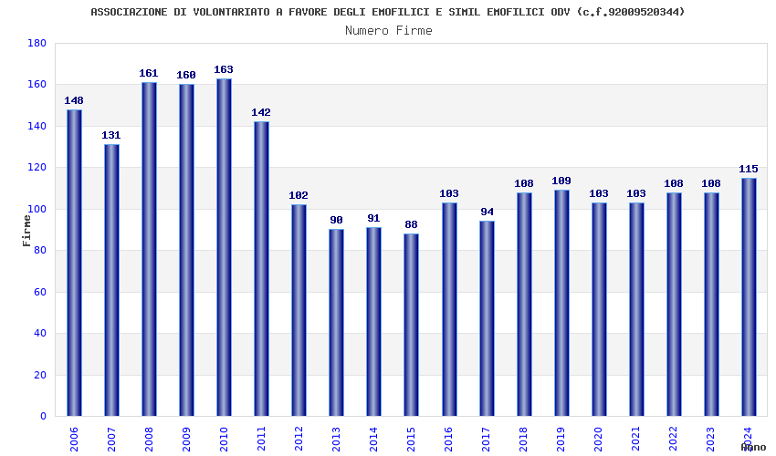 | Anno | Firme | Importi | Media | Naz. | Reg. | Prov. | Comu. |