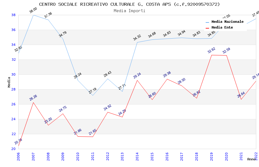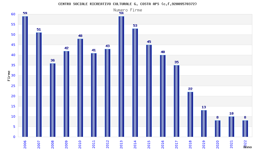 | Anno | Firme | Importi | Media | Naz. | Reg. | Prov. | Comu. |