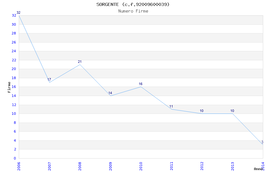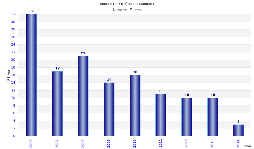 | Anno | Firme | Importi | Media | Naz. | Reg. | Prov. | Comu. |