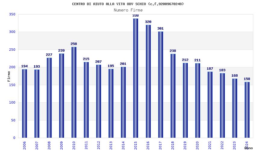 | Anno | Firme | Importi | Media | Naz. | Reg. | Prov. | Comu. |