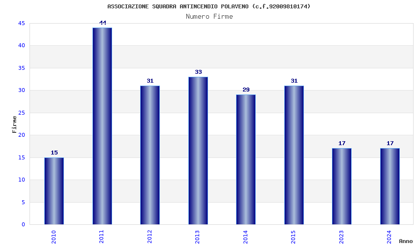 | Anno | Firme | Importi | Media | Naz. | Reg. | Prov. | Comu. |