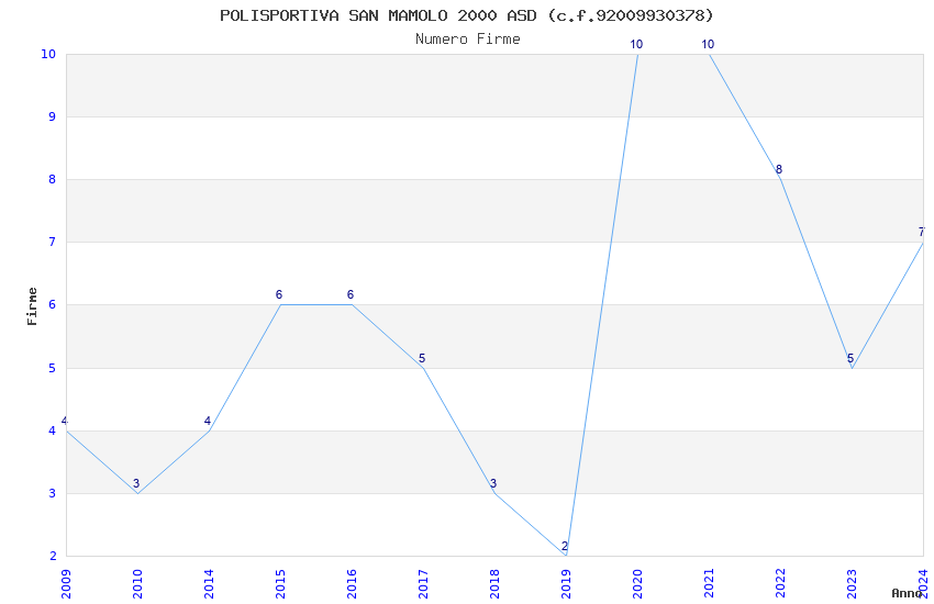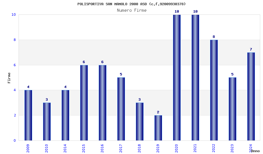 | Anno | Firme | Importi | Media | Naz. | Reg. | Prov. | Comu. |