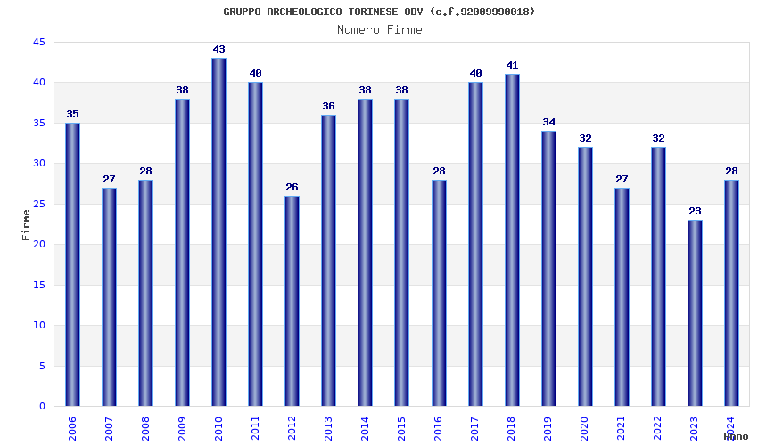 | Anno | Firme | Importi | Media | Naz. | Reg. | Prov. | Comu. |