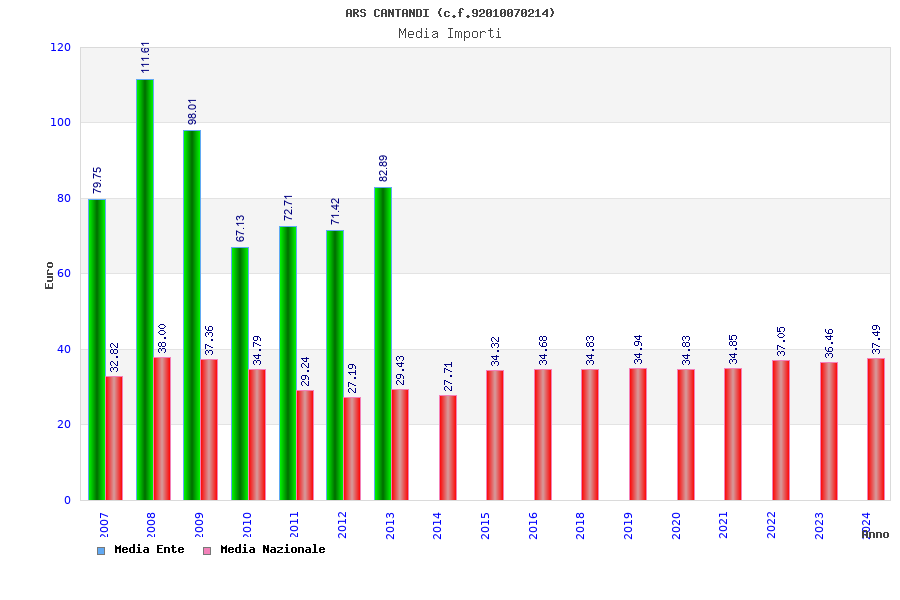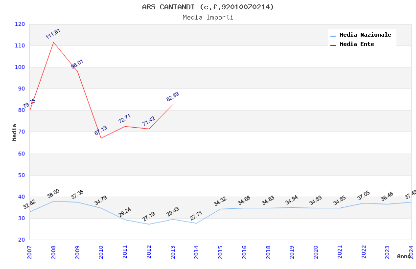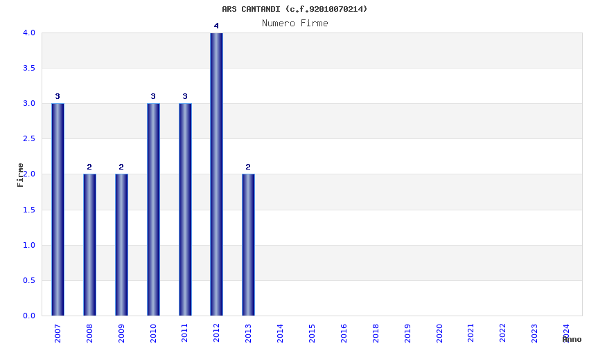 | Anno | Firme | Importi | Media | Naz. | Reg. | Prov. | Comu. |