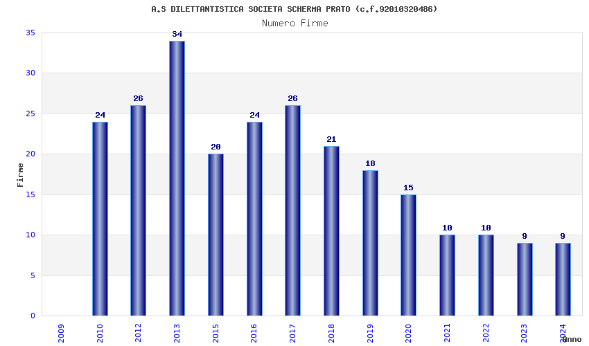 | Anno | Firme | Importi | Media | Naz. | Reg. | Prov. | Comu. |