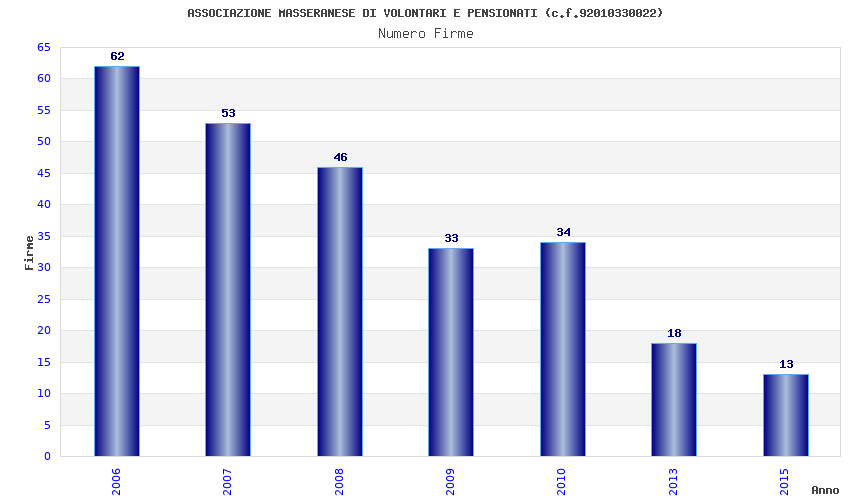 | Anno | Firme | Importi | Media | Naz. | Reg. | Prov. | Comu. |