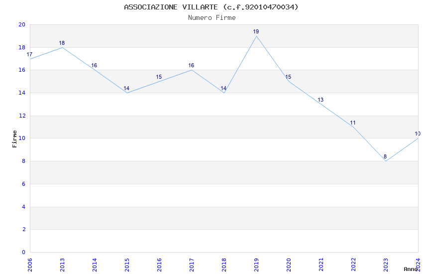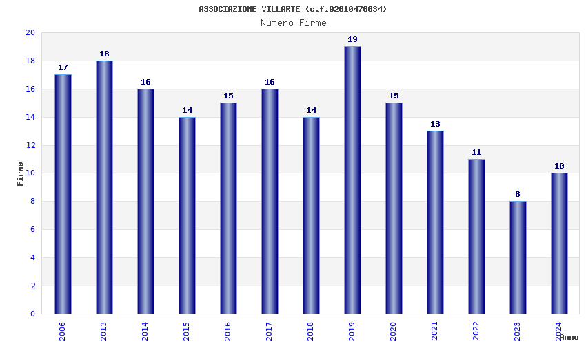 | Anno | Firme | Importi | Media | Naz. | Reg. | Prov. | Comu. |