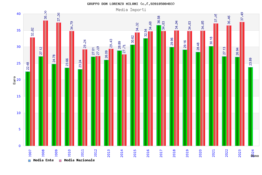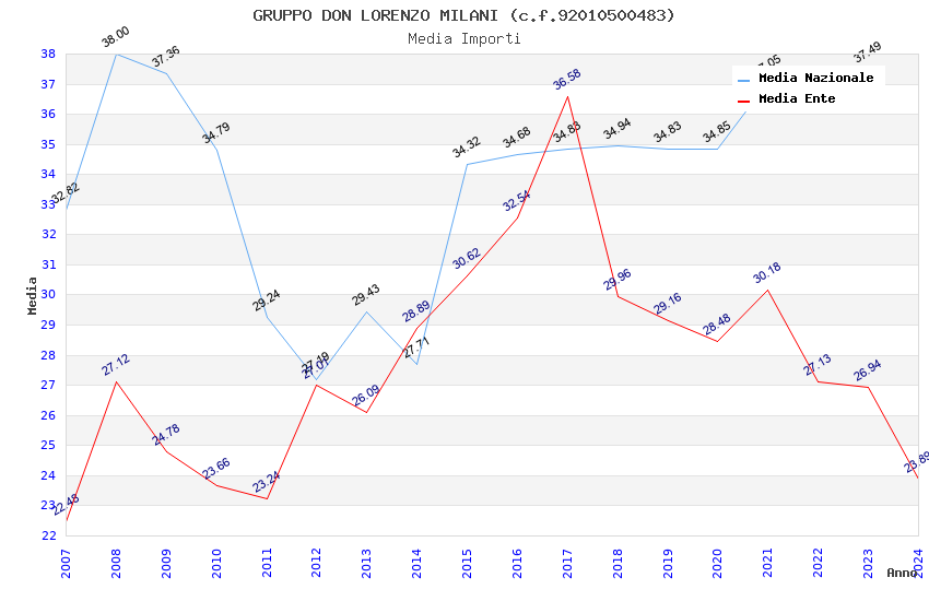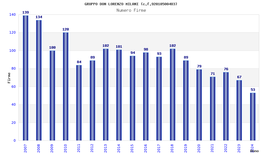 | Anno | Firme | Importi | Media | Naz. | Reg. | Prov. | Comu. |