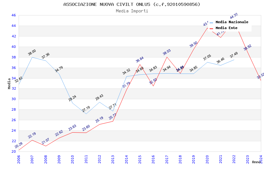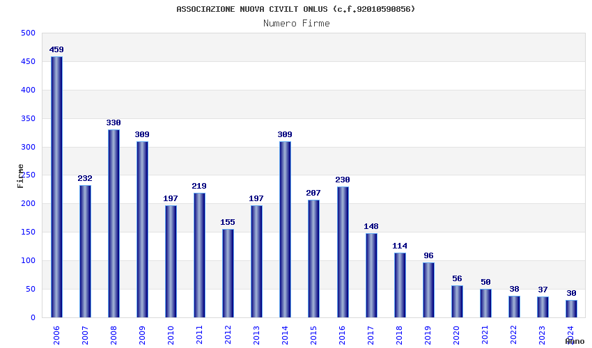 | Anno | Firme | Importi | Media | Naz. | Reg. | Prov. | Comu. |