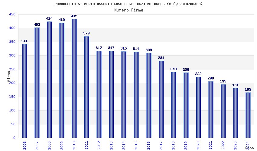 | Anno | Firme | Importi | Media | Naz. | Reg. | Prov. | Comu. |