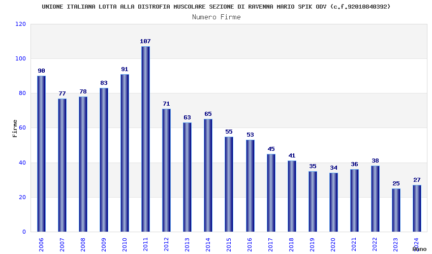 | Anno | Firme | Importi | Media | Naz. | Reg. | Prov. | Comu. |