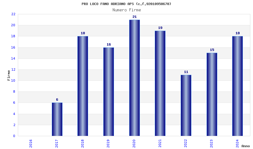 | Anno | Firme | Importi | Media | Naz. | Reg. | Prov. | Comu. |