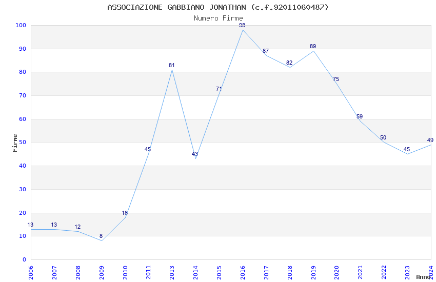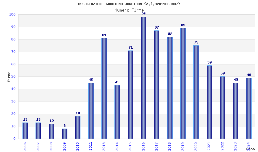 | Anno | Firme | Importi | Media | Naz. | Reg. | Prov. | Comu. |