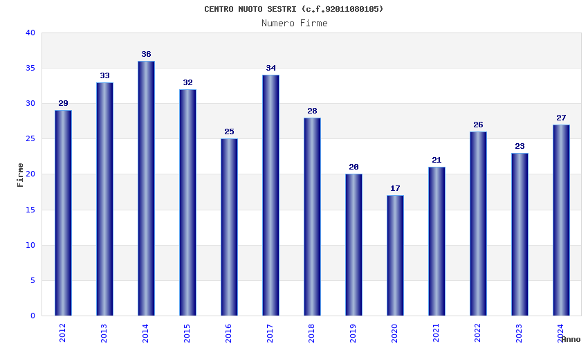 | Anno | Firme | Importi | Media | Naz. | Reg. | Prov. | Comu. |