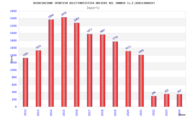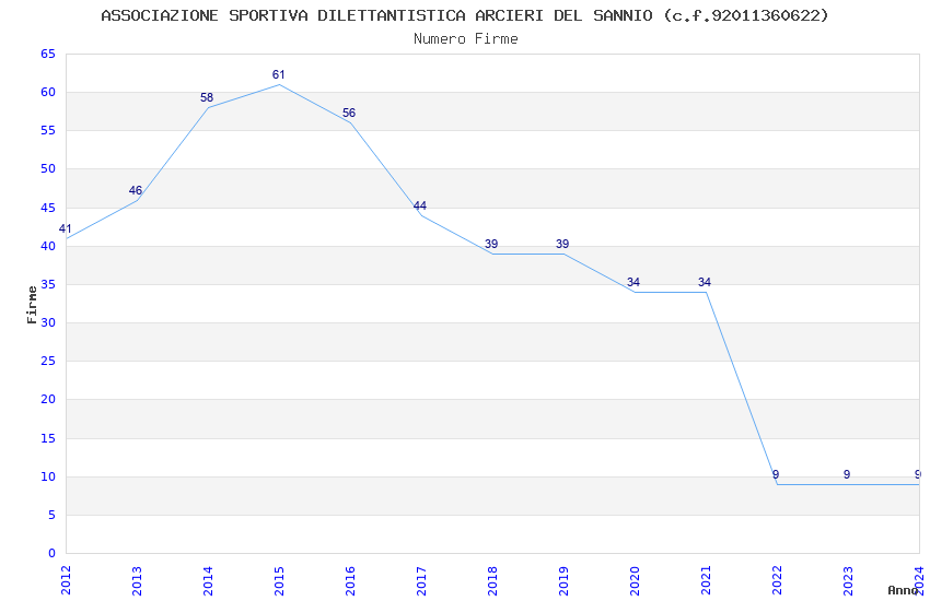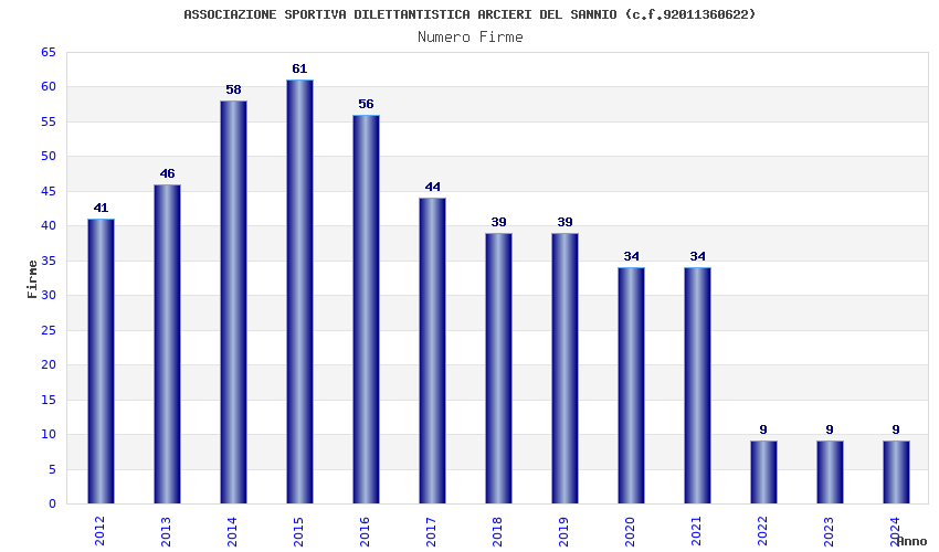 | Anno | Firme | Importi | Media | Naz. | Reg. | Prov. | Comu. |