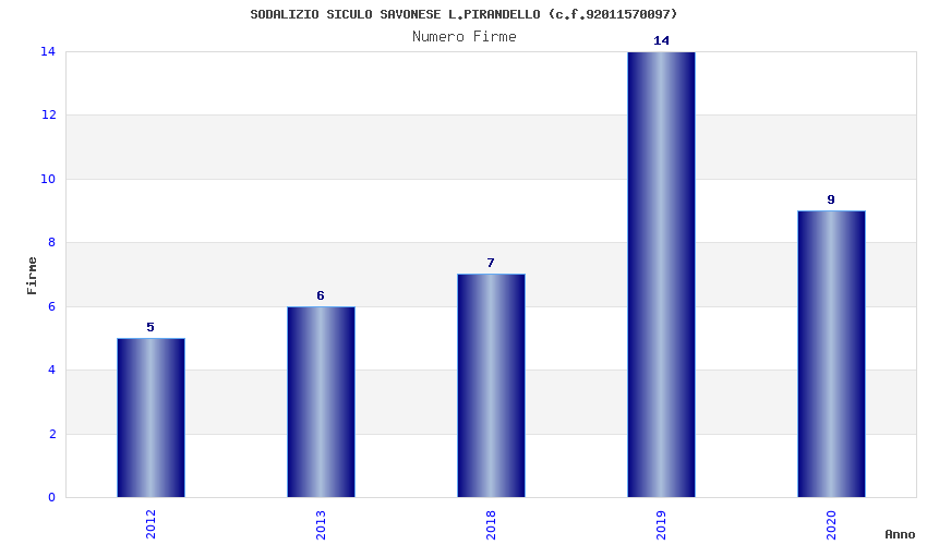 | Anno | Firme | Importi | Media | Naz. | Reg. | Prov. | Comu. |