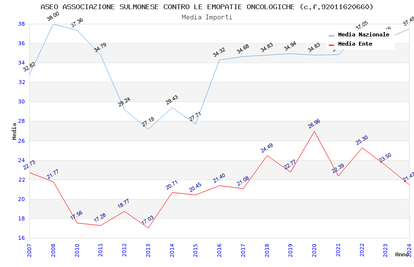 | Anno | Firme | Importi | Media | Naz. | Reg. | Prov. | Comu. |