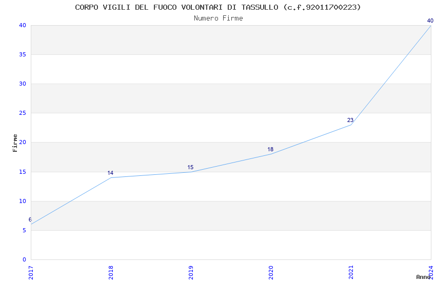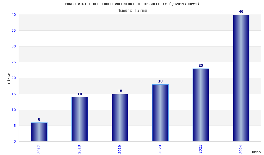 | Anno | Firme | Importi | Media | Naz. | Reg. | Prov. | Comu. |