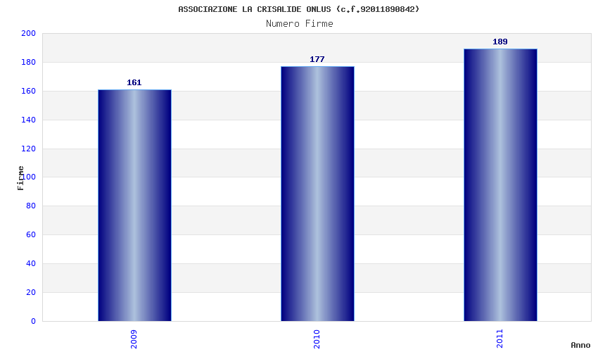 | Anno | Firme | Importi | Media | Naz. | Reg. | Prov. | Comu. |