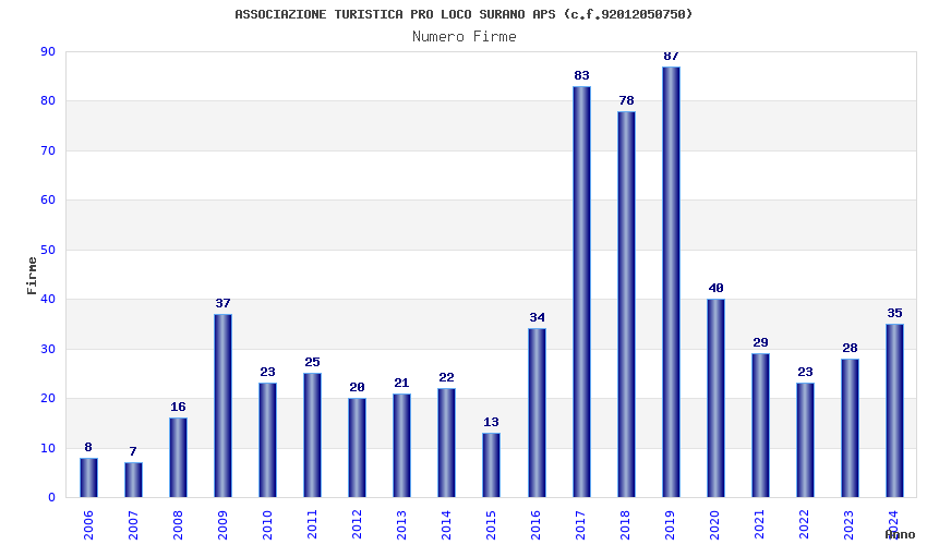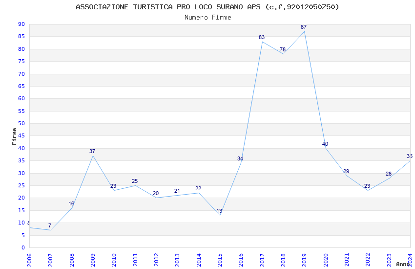 | 2019 | 87 | 2.007,03 | 23,07 | 23.939 | 1.145 | 194 | 1 |