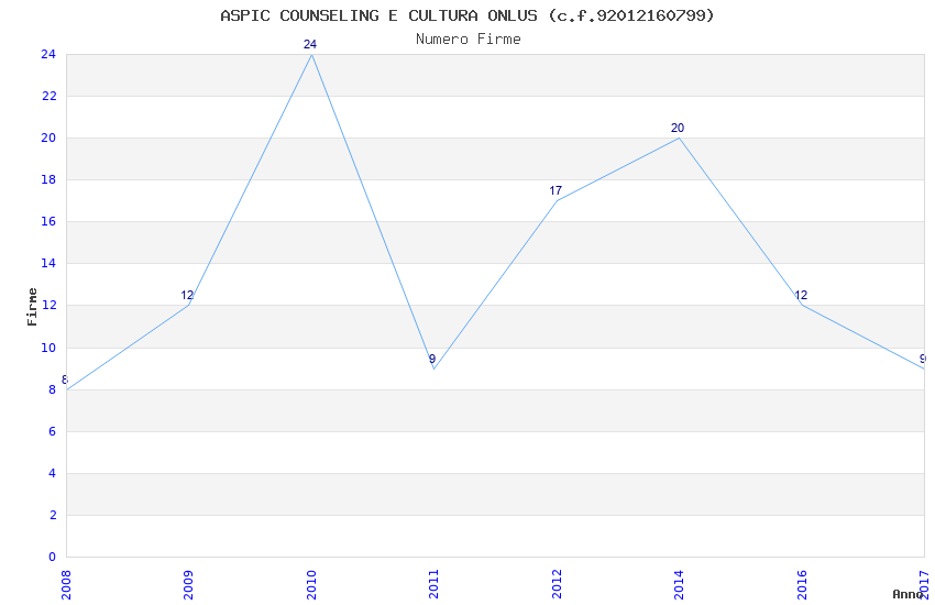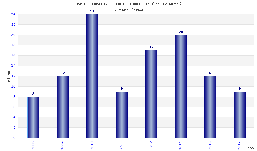 | Anno | Firme | Importi | Media | Naz. | Reg. | Prov. | Comu. |