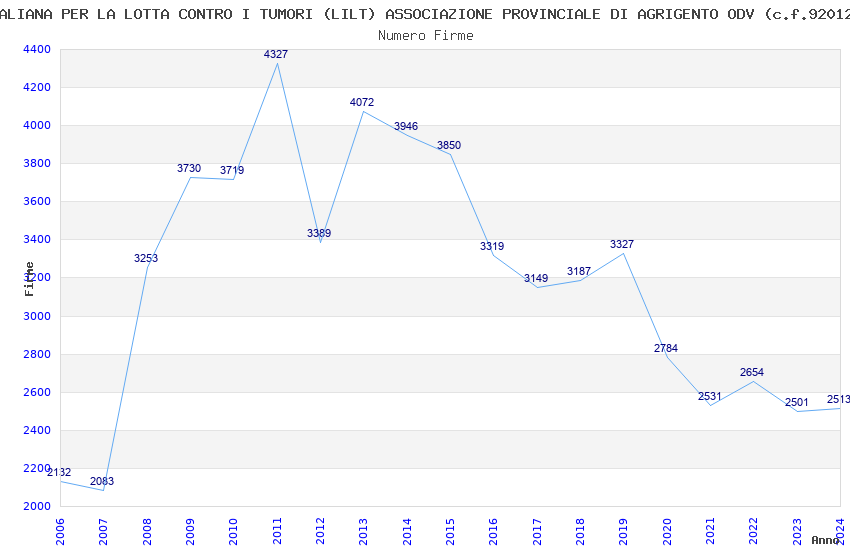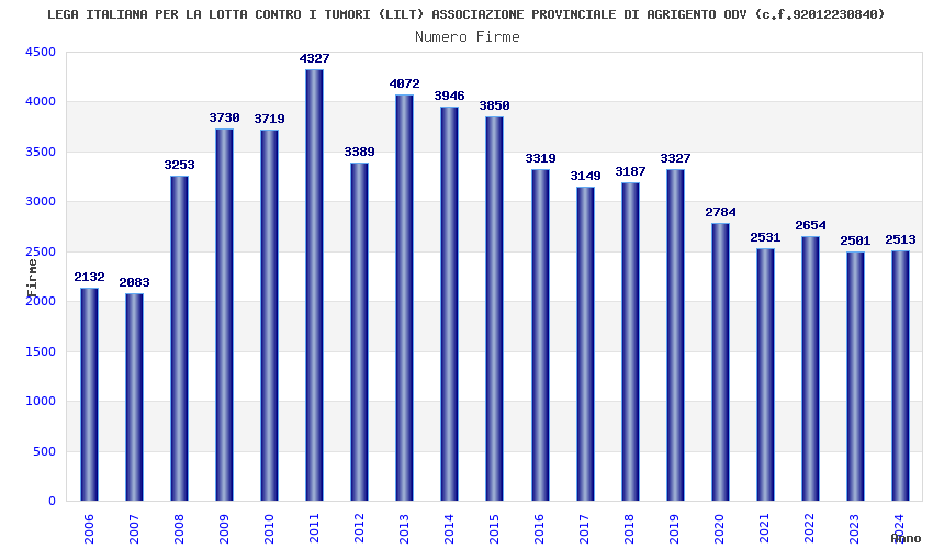 | Anno | Firme | Importi | Media | Naz. | Reg. | Prov. | Comu. |