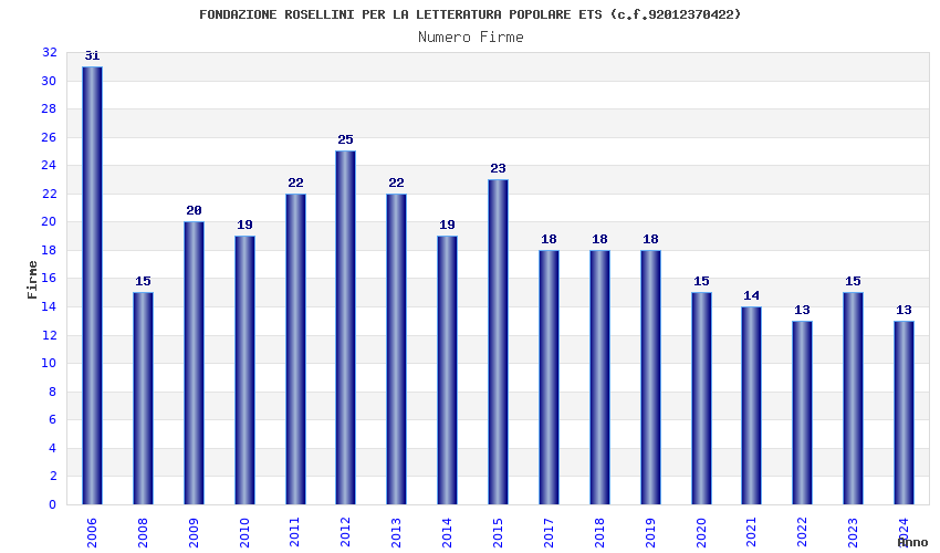 | Anno | Firme | Importi | Media | Naz. | Reg. | Prov. | Comu. |