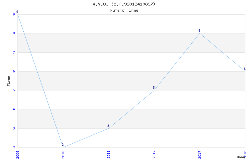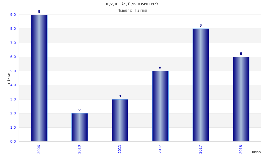 | Anno | Firme | Importi | Media | Naz. | Reg. | Prov. | Comu. |