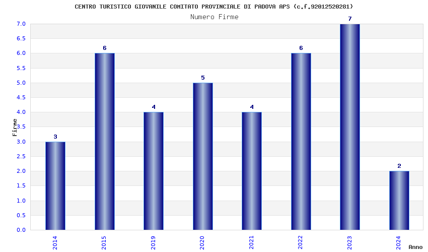 | Anno | Firme | Importi | Media | Naz. | Reg. | Prov. | Comu. |
