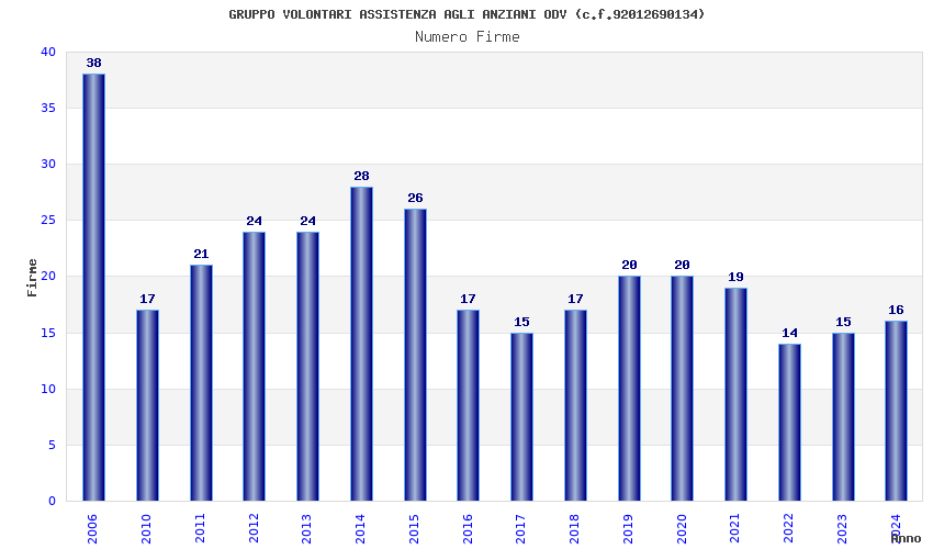 | Anno | Firme | Importi | Media | Naz. | Reg. | Prov. | Comu. |