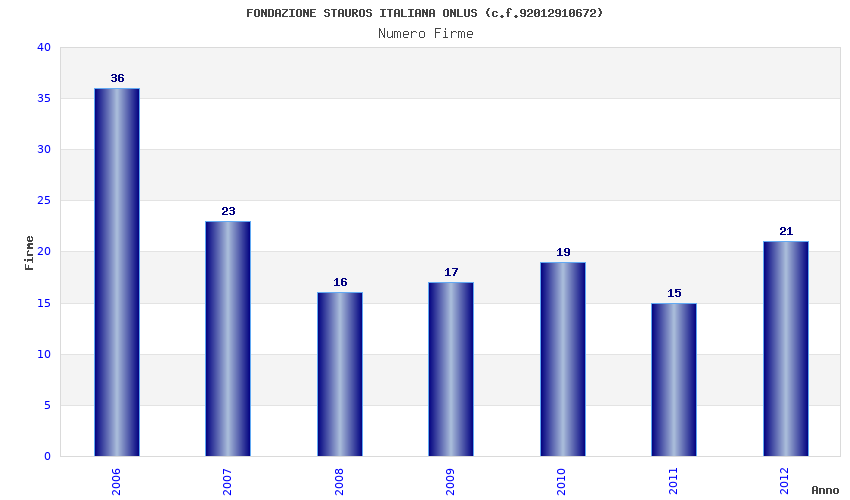 | Anno | Firme | Importi | Media | Naz. | Reg. | Prov. | Comu. |