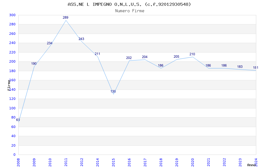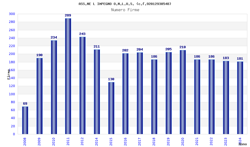 | Anno | Firme | Importi | Media | Naz. | Reg. | Prov. | Comu. |