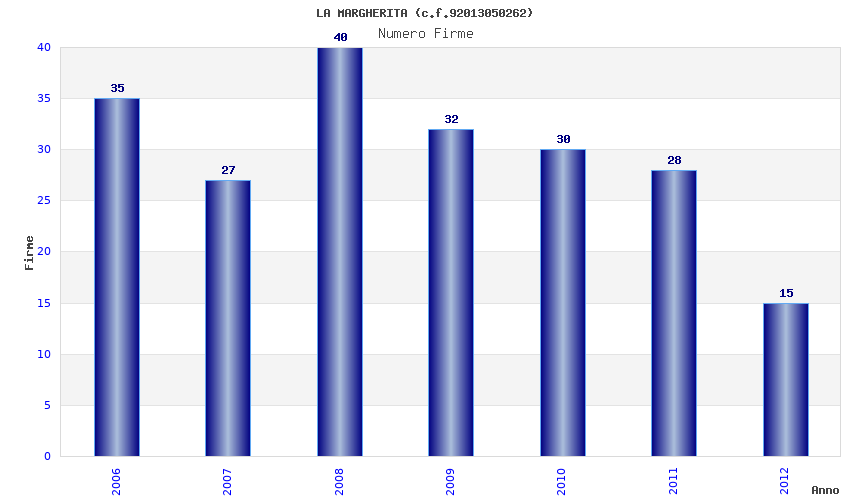 | Anno | Firme | Importi | Media | Naz. | Reg. | Prov. | Comu. |